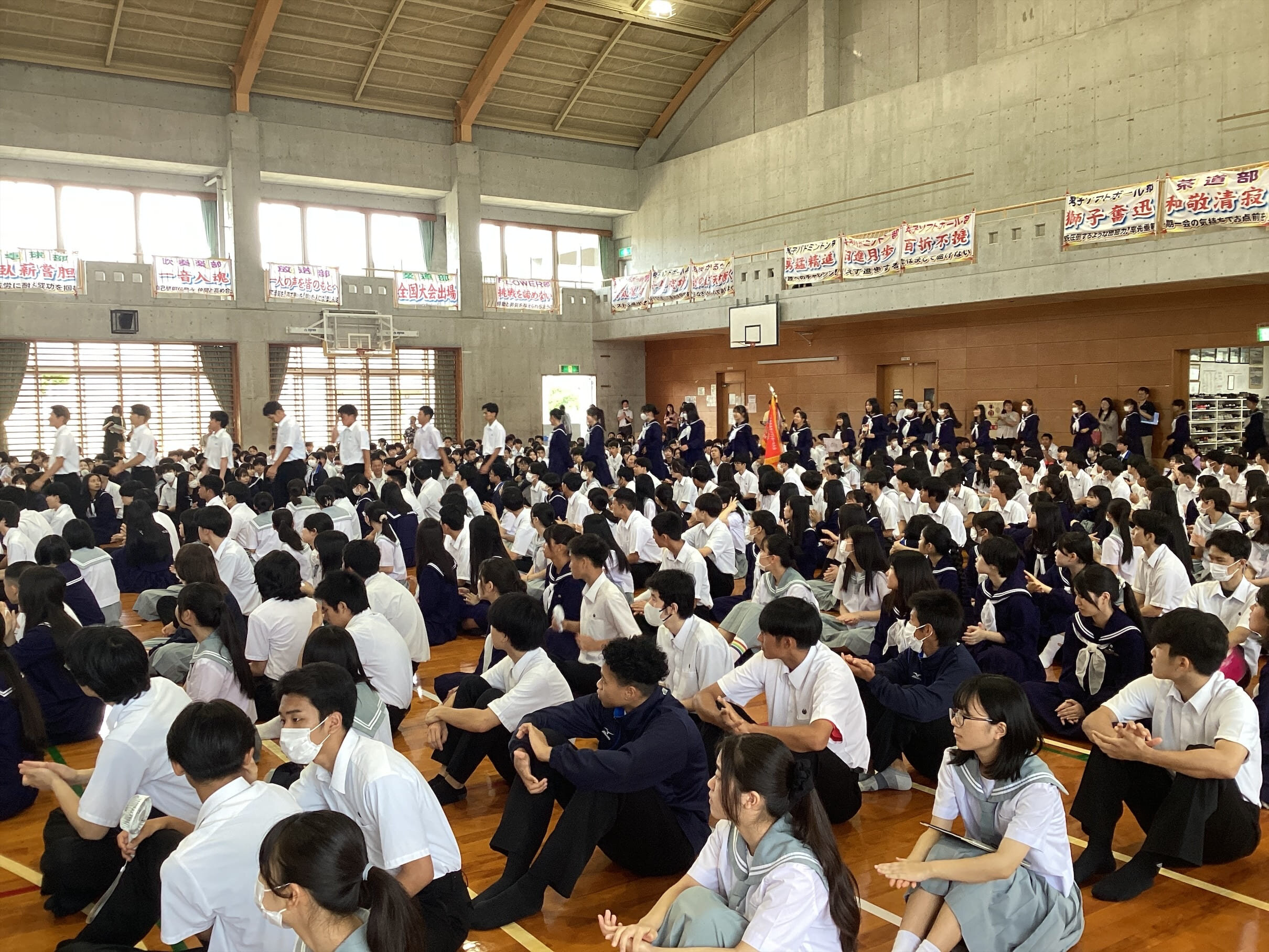 本日の朝、男女ソフトボール部の春季大会アベック優勝を受けて、緊急で全体朝会を行い男女ソフトの快挙を全校生徒で讃えました。男女とも5/11(土)~12(日)の日程でそれぞれ『九州地区春季高等学校ソフトボール大会(男子は熊本県、女子は大分県)』に参加します。健闘を期待します!